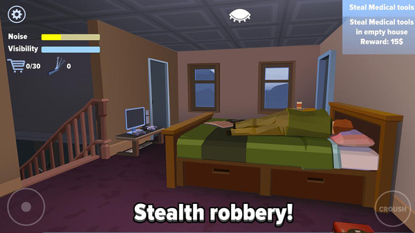 想当快乐的偷男?那就来玩《偷偷摸摸模拟器》吧!这是一款模拟小偷潜入行窃的休闲趣味游戏——玩家将化身快乐的偷男,悄无声息溜进富人宅邸,在不被发现的情况下偷走宝贝并安全撤离,全程都得保持安静;之后还要在避开警察的前提下把赃物卖掉,卖得越多收益越高。游戏里不同民宅难度各异,偷男,你能一直快乐下去吗?(游戏仅供娱乐,请勿模仿)