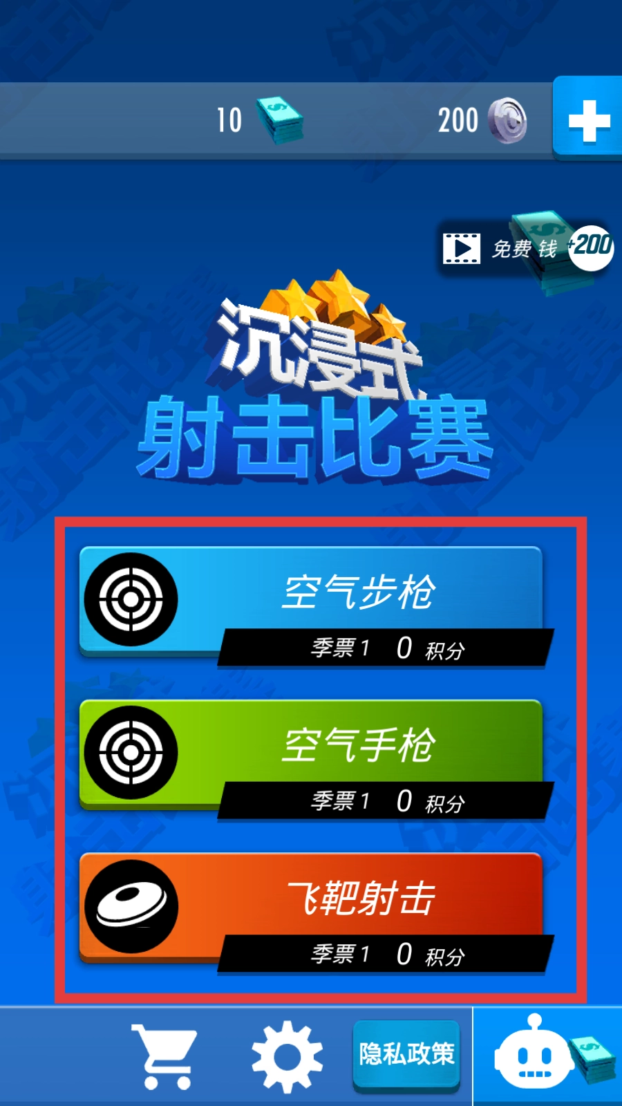 1、启动游戏后,从【空气步枪】、【空气手枪】和【飞靶射击】这三个模式里任选其一,即可开启射击对决。