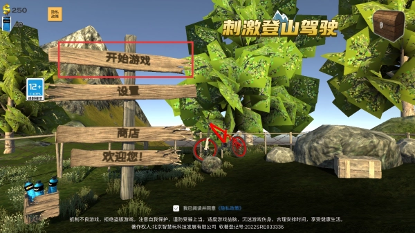 1、进入游戏主界面后,点击【开始游戏】按钮,即可开启山地自行车驾驶挑战,开启这场充满刺激的冒险之旅。