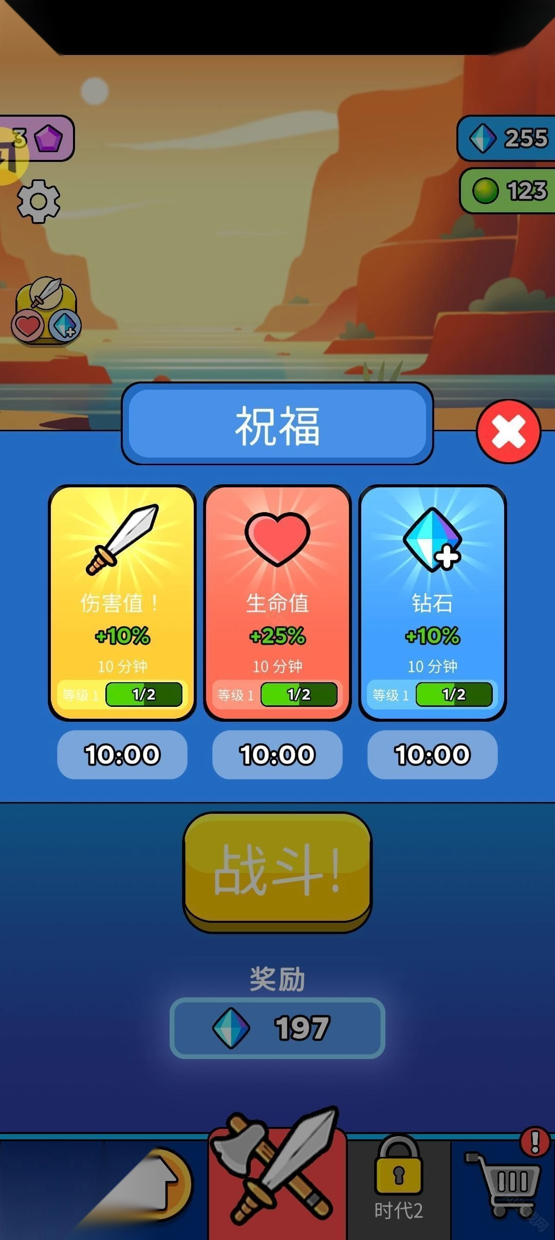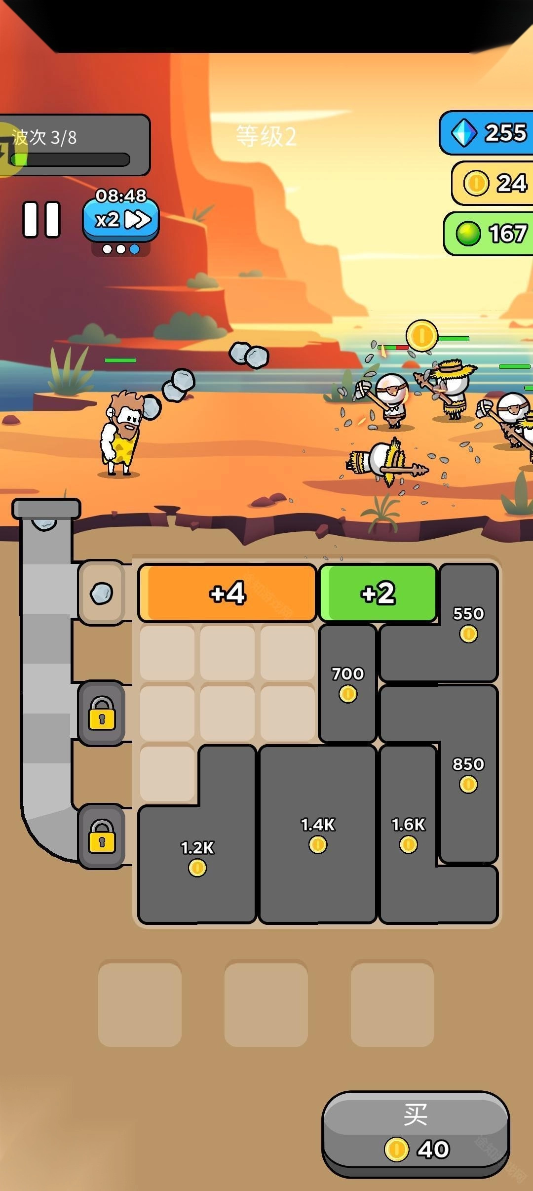 现在你瞧瞧,是不是变成两个石头了?武器的攻击速度也加快了。要是有两个相同的数字,就能合成更大的数,不过合成后会占用更多格子,别忘了解锁哦。