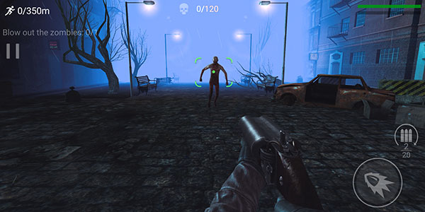 2面对僵尸的进攻,我们会通过绿色准星自动完成瞄准操作。