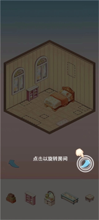 2、接着通过点击左下角和右下角的蓝色图标按键来左右旋转房间;