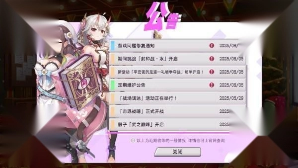 游戏的更新信息、问题修复和最新活动可在公告栏查看。