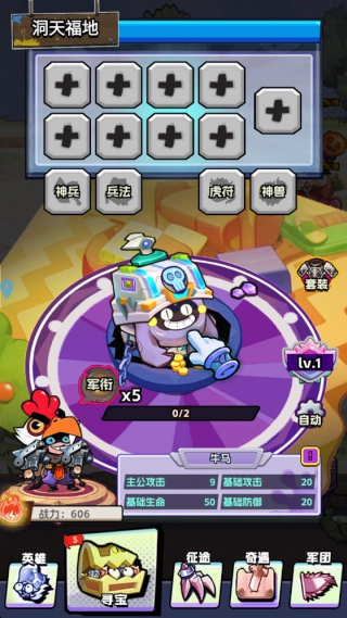 3、点击下方的寻宝按钮,在这一边可以得到一些新的装备,角色穿上了之后就能提升它的战斗能力以及抗打能力;