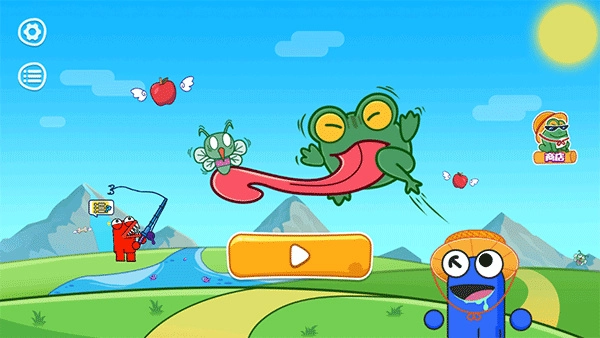 2、操控青蛙在池塘里来回蹦跳,要是碰到体型比自己小的虫子,就能轻松把它们吞下去;