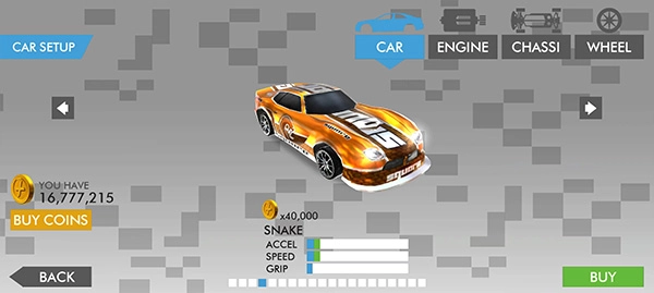 3.解锁各类高性能赛车,并自由定制涂装色彩与图案,打造个性十足的专属跑车。