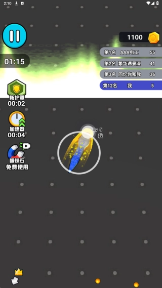 4. 面对强大的AI蛇时不要正面硬拼,可以引诱其撞上障碍物或其他蛇。