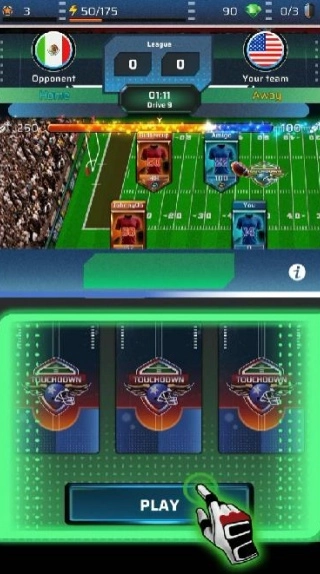 2、在实时比赛中进行进攻和防守,掌握传球、接球、冲刺和拦截的操作技巧,完成关键达阵。