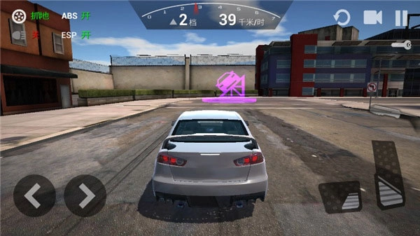 4、开车时只要用屏幕上的虚拟按钮控制方向和速度就行,上手很快。