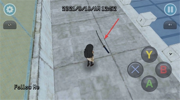 2、接着我们需要控制病娇酱靠近武士刀,接着需要点击界面右侧的B键。