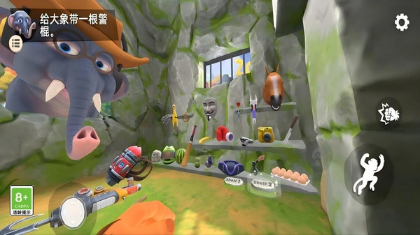 2、可以用可爱的动作,比如翻滚、倒挂或者耍小把戏来取悦友善游客获得奖励,又或者是对捣乱的游客进行反击,还能利用周围的道具制造一些搞笑的场面;