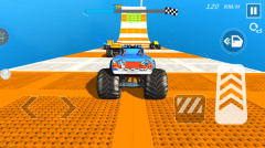 4通过虚拟按键控制卡丁车的转向、漂移、加速和特技释放,在设有特殊机关的赛道上持续高速行驶。