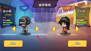1启动游戏后,在角色选择页面会显示两个可选角色,分别对应1P和2P操控位。玩家只需点击对应角色下方的确认按钮,即可完成1P和2P操控角色的选定。