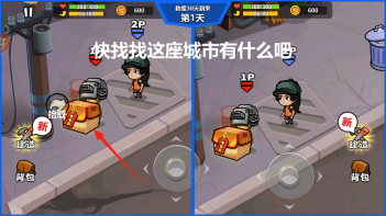 2开启探索的首日,跟着指引去发掘这座城市的奥秘吧。操控角色移动到红色箭头所指的箱子位置,点击进行收集,以此获取所需的物资,同时积攒金币与各类道具。
