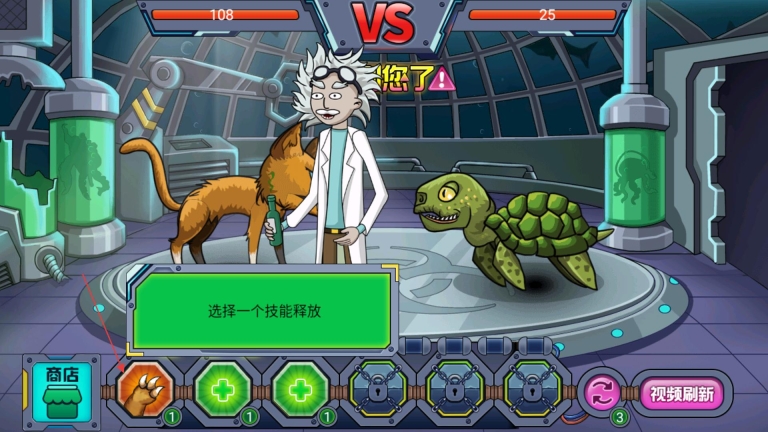 3、进入战斗场景后,当面对敌方基因兽时,界面下方会出现技能释放选项,玩家只需从中选择一个技能进行释放,即可对敌方基因兽造成伤害,从而推动战斗进程。