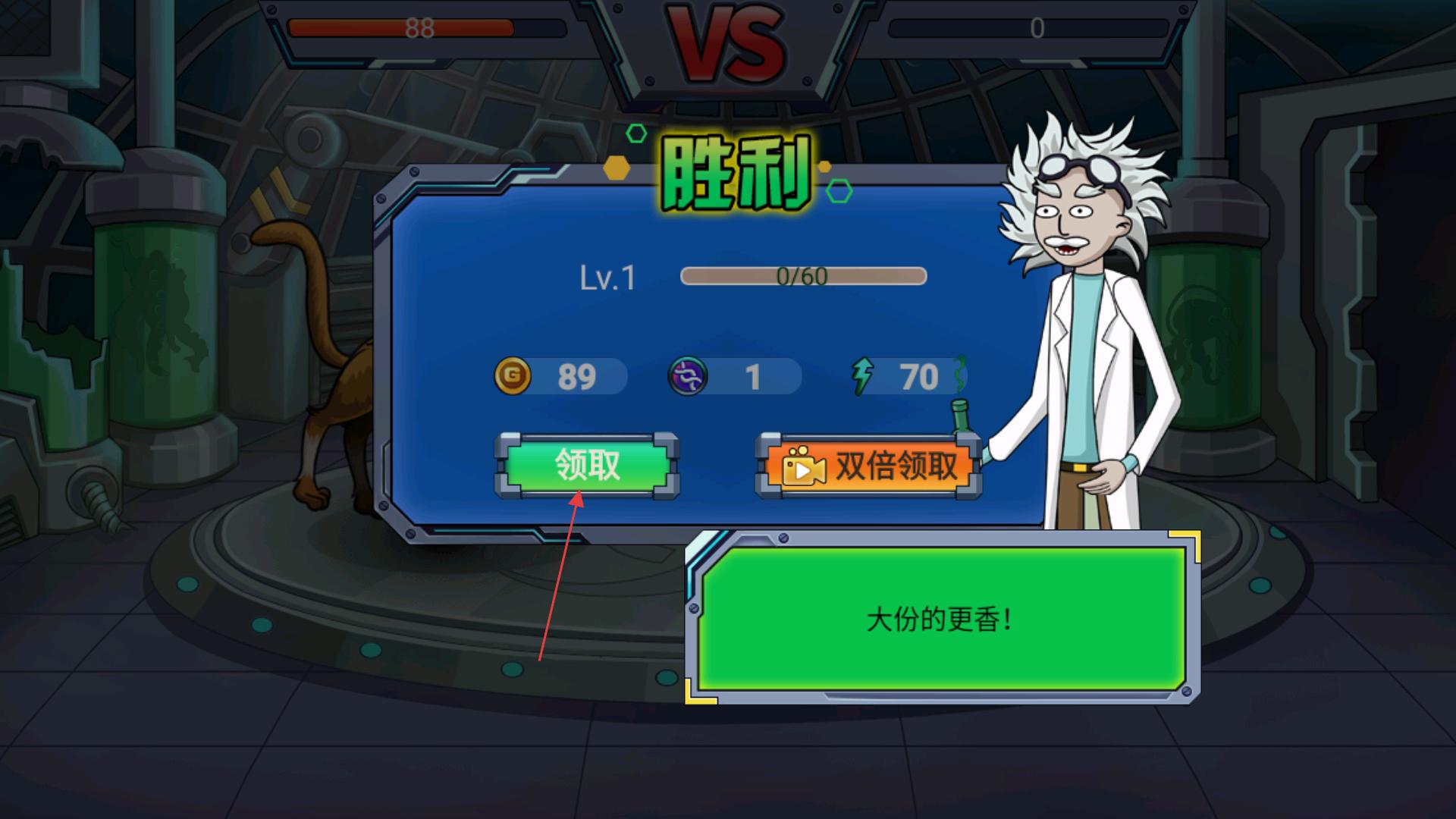 4当成功战胜对手的基因兽后,会出现胜利结算页面,上面会显示赢得的金币、基因链等战利品。点击领取按键,就能拿到这些奖励,然后继续进行游戏。