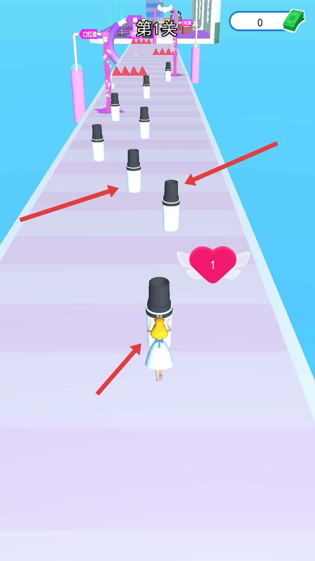 1、基础跑酷操作:左右滑动可控制角色横向移动,连续点击能完成跳跃动作以避开路障,长按则可滑行通过低矮障碍物,从而收集更多口红原料。