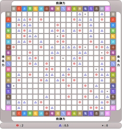 在这套设定里,招式的类型与灵宠的类型存在相互制约的关联,其具体的克制规则可对应到宝可梦第六世代的18种属性克制体系——当克制系数为1时,招式能造成常规威力的伤害;系数达到2时,招式的效果会格外显著;系数降至1/2时,招式的作用效果会大幅减弱;而系数为0的情况下,该招式将完全无法对目标产生影响。