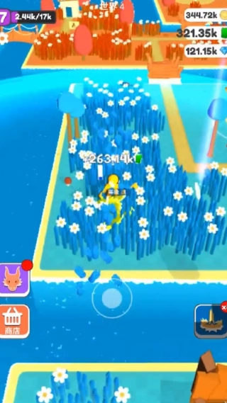 1、玩家可以带领宠物一起收集资源,体验欢乐的割草玩法,将各种资源收集起来并发展自己的基地。