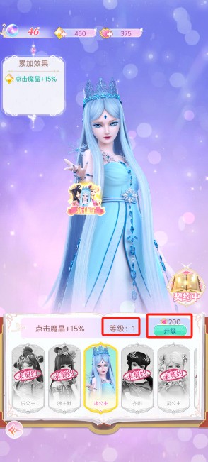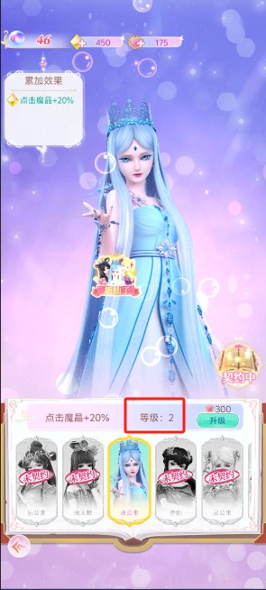 3、提升点击等级能够增加每次点击所获取的魔晶数量,并且升级达到一定次数后还可解锁新的衣服。