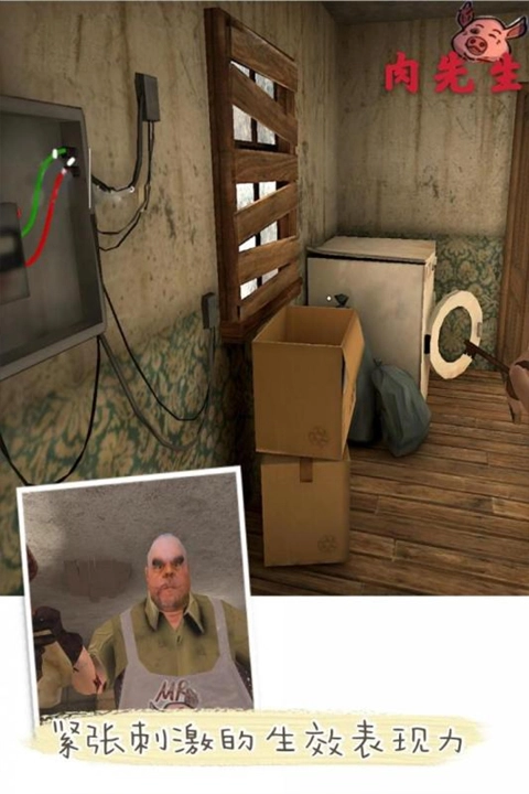 2、玩家得迅速找到藏身的地方,躲避毫无感情的屠夫肉先生的追捕,想办法活着离开。