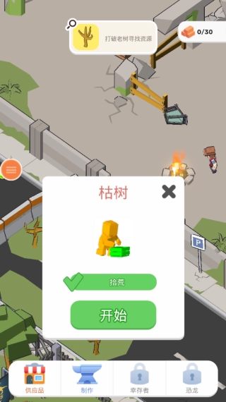 2.紧接着玩家会踏入恐龙世界开启冒险,你能够依据画面上方的任务提示展开行动,现在去收集枯树树枝吧。