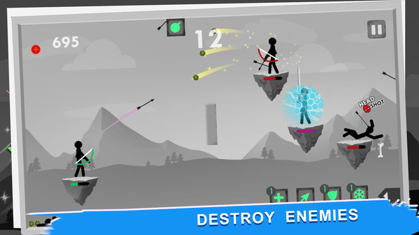 这是一款融合真实物理机制的动作射击类挑战游戏,玩家将进入一个由火柴人构成的独特世界。在这里,你会遭遇形形色色的强力火柴人射手,需要凭借手中的弓箭,如同传说中的神射手般精准击落空中的敌人。通过完成游戏内的各类任务,你可以积累金币,解锁更强大的弓箭手角色,这些新角色将助力你更高效地击败对手。