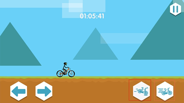 1、点击开始游戏进入游戏,右侧的图标分别可以对自行车进行刹车和行驶操作,帮助你进行加速减速。