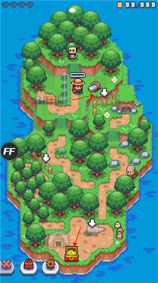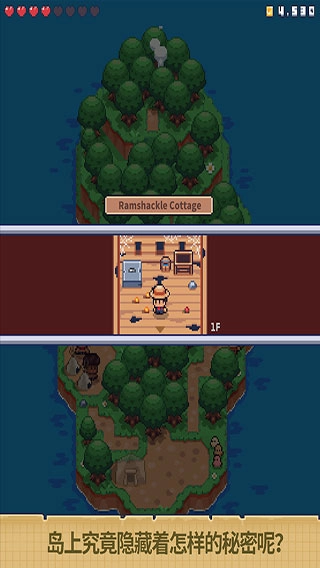 1、全程以复古像素风作为核心视觉表达形式,海岛的椰林树影、嶙峋礁石,角色的动作神态、建筑的轮廓构造,均由像素颗粒拼接而成,这种独特的视觉风格融合了怀旧感与奇幻感,为你带来和主流 3D 画质截然不同的另类视觉体验。