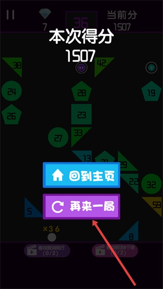 4、本次得分达【1507】,点击【再来一局】,再次挑战冲击更高分数。