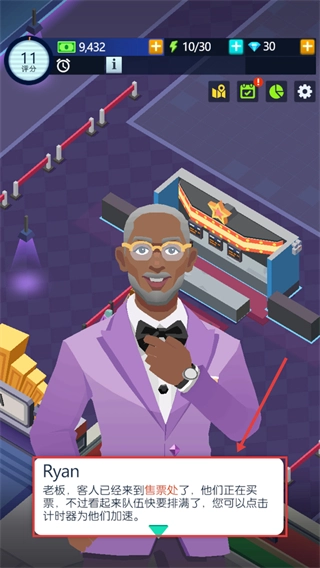在售票处排队时,可点击【计时器】功能来加速服务流程,以此减少顾客等待时间,避免因等待过久导致的顾客流失,从而保障观影服务的整体效率。