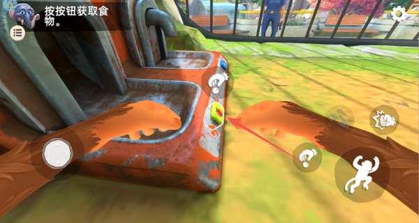 1、操控角色移动到指定机器旁,点击按钮获取食物,为后续互动与捣蛋储备基础道具。