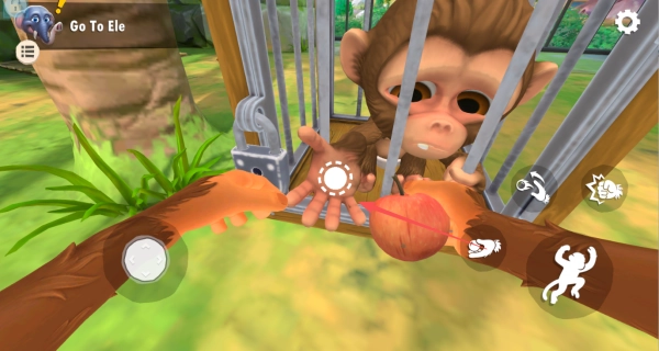 2、找到场景中的小猴子,将获取的食物投喂给它,触发专属互动剧情,推进游戏进程。