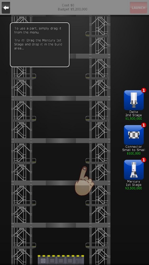 后续所有玩法的基础,都在于玩家能否顺利完成火箭的组装。 1、通过前面的教程,我们能掌握火箭建造的具体操作流程。进入建筑界面后,顶部会显示详细的费用数值,玩家需要在预算限制内完成火箭建造。第一步是选择火箭的主体部分,具体如图所示: