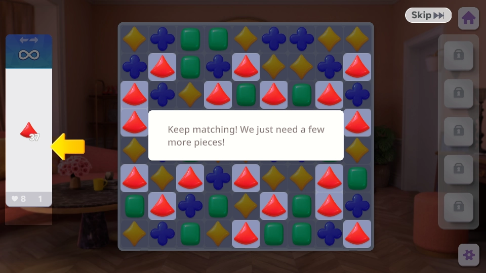 3、注意左边关卡要求,继续消,把目标颜色消够!