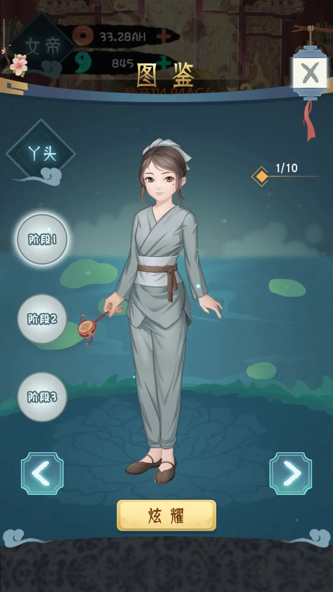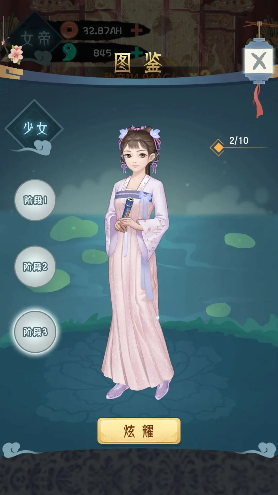 以下为游戏中从丫头至侍女的三个阶段的服装全图鉴:
