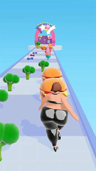 游戏玩法沿用了收集类动作跑酷经典的正向行进、左右三赛道设定。当然,游戏里也藏着些意外小惊喜:受题材影响,玩家吃下食物后会出现增肥或减肥效果,这时就得自行抉择——是先控制好体重再一路躲避各类食物,还是持续吃下不同增减肥食物来调控身形。此外还有个有趣设定:关卡开始时的角色造型,不像同类型游戏那样始终保持相同体重。