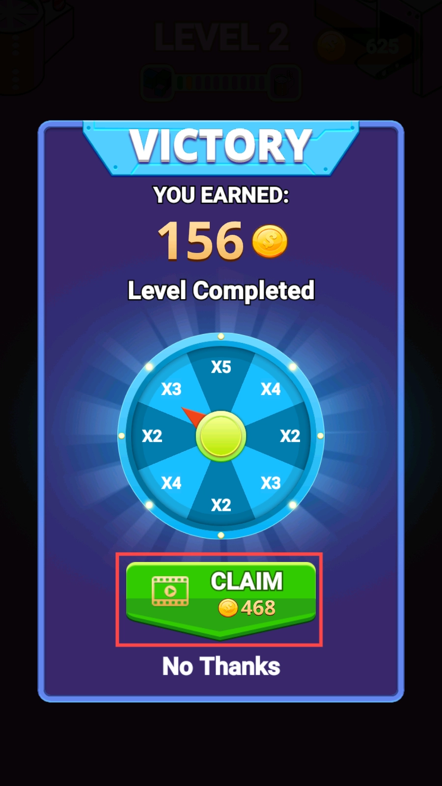 4、战斗胜利后,点击【CLAIM】按钮,观看视频领取多倍金币奖励,强化军队,挑战更高难度的关卡吧。