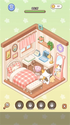 3、每一关都有不同的房间等待你去创造,简单的操作会带来最有趣的游玩体验。