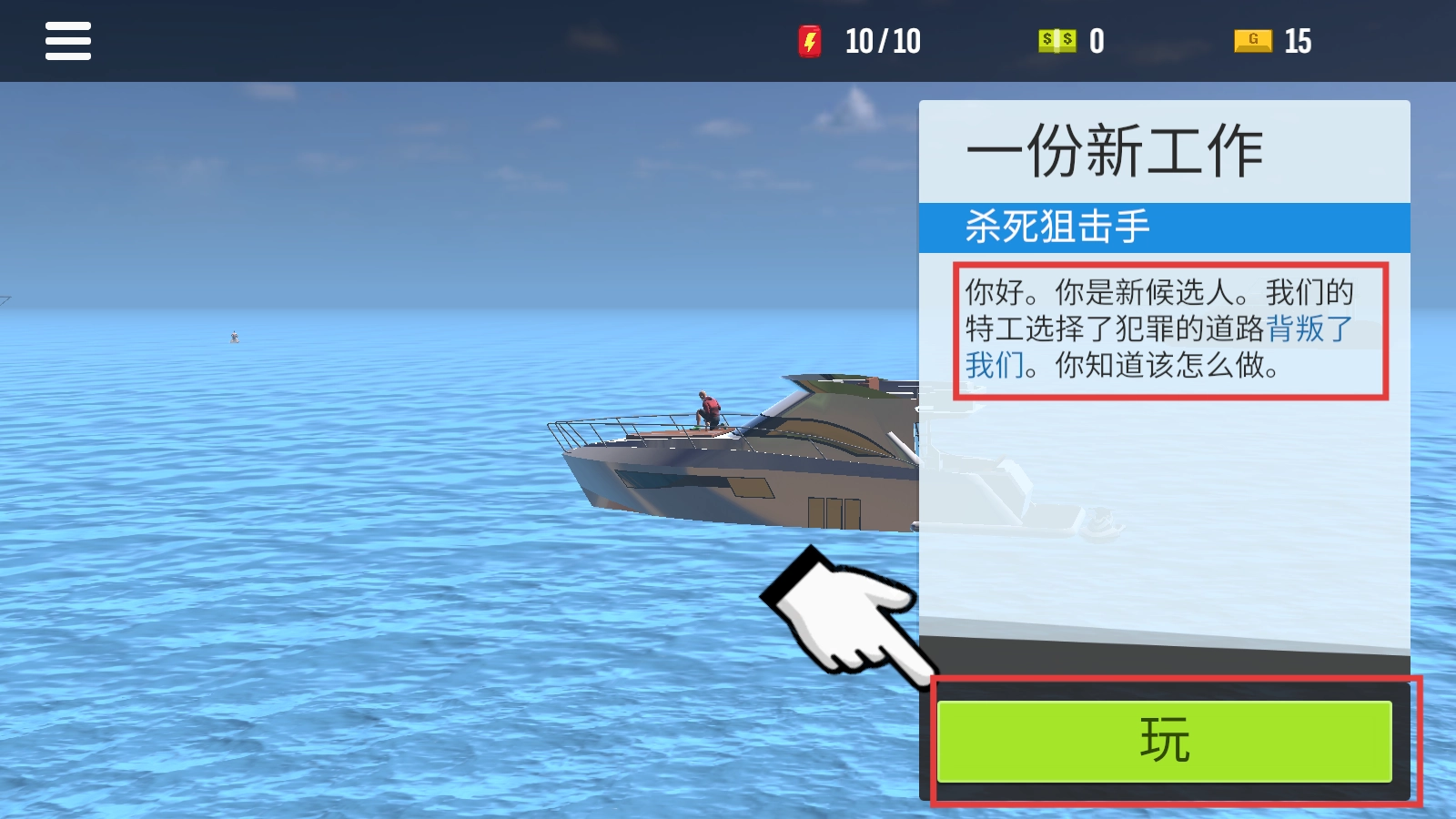 1、进入游戏,接取【杀死狙击手】的任务,再点击【玩】,直面挑战背叛特工。