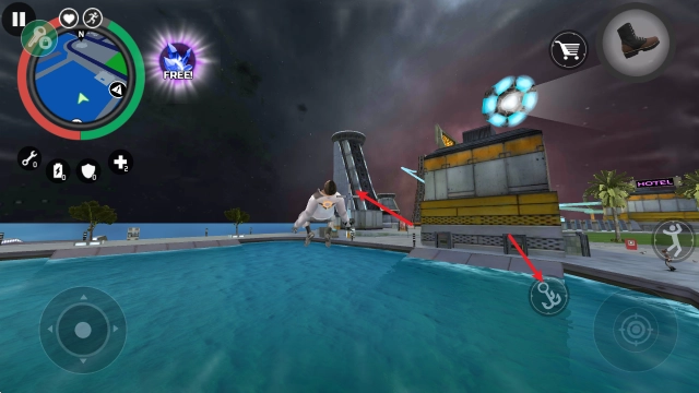 2、对准墙壁发射绳索,就能让你体验短暂的飞行。