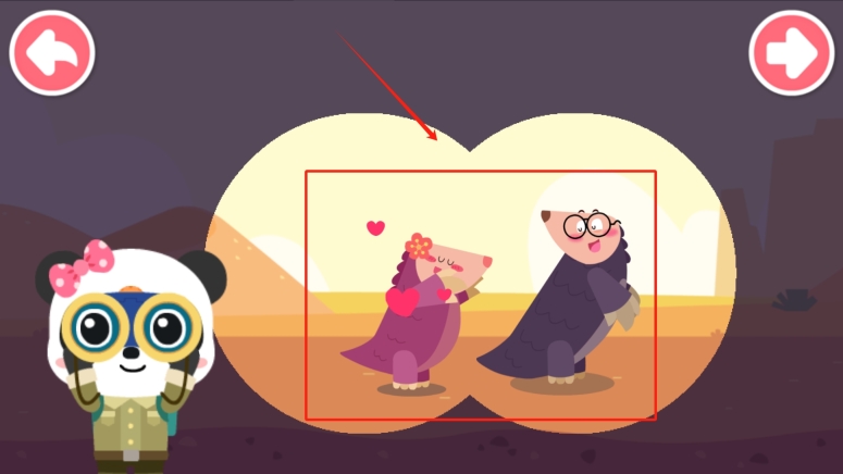 1、小小探险家,开启沙漠探险之旅。哎呀,一群野狼盯上了鸵鸟蛋,得赶紧帮鸵鸟妈妈把它们赶走!狐獴宝宝迷了路找不到家,别着急,按照它们衣服的颜色找到对应的小窝,送小家伙们回去!还要帮骆驼先生,从货架上找出属于它的货物哟。这个过程能考验宝宝的反应能力和观察能力呢。