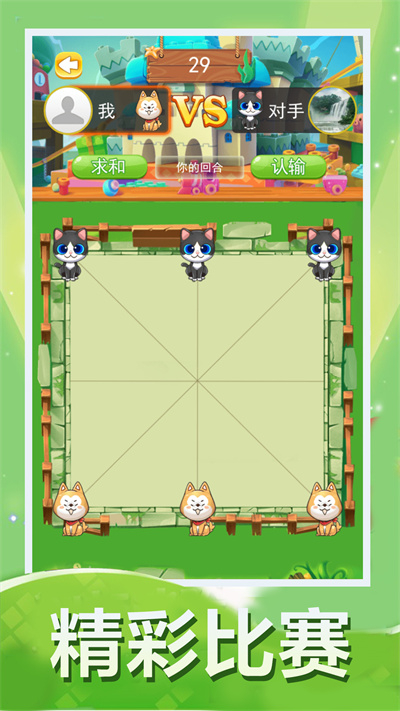 1、趣味性十足,以猫和狗为造型的两种棋子,让游戏在趣味与挑战层面都有了进一步提升。