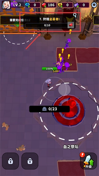 2、解锁【狩猎盗墓者I】的任务,积累【150】血液完成进度,击败紫色盗墓者敌人推进冒险。