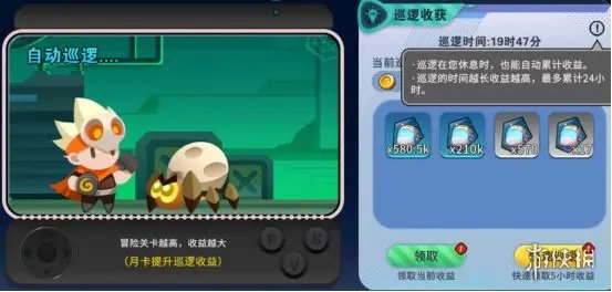 哪怕你处于休息状态,巡逻也会自动累积收益。巡逻时长越久,收益就越高,最多能累积24小时,助力资源更高效地积累。
