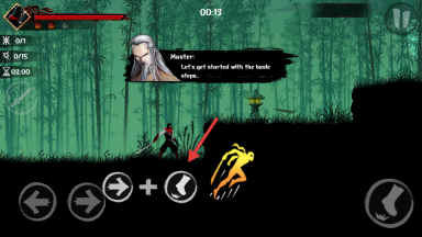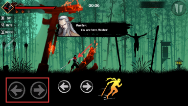 2、使用左右方向键控制忍者移动。