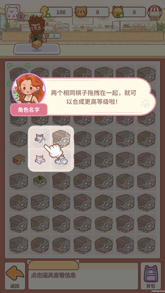 3、为每个阶段设定目标甜点,只需一键操作就能合并升级甜点,还能经营一家猫咪主题的咖啡店!