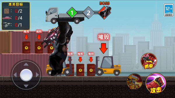 3、战斗操作和目标绑定得十分紧密,像摧毁、抓举这类动作都是直接为闯关服务的,玩家能即时获得成就感。