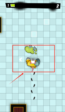 2游戏过程里,界面左上方显示着数字1和绿色的能量条,画面中央的角色正上方有物品在掉落,底部则有黑色的脚印标识来提示该往哪个方向移动。