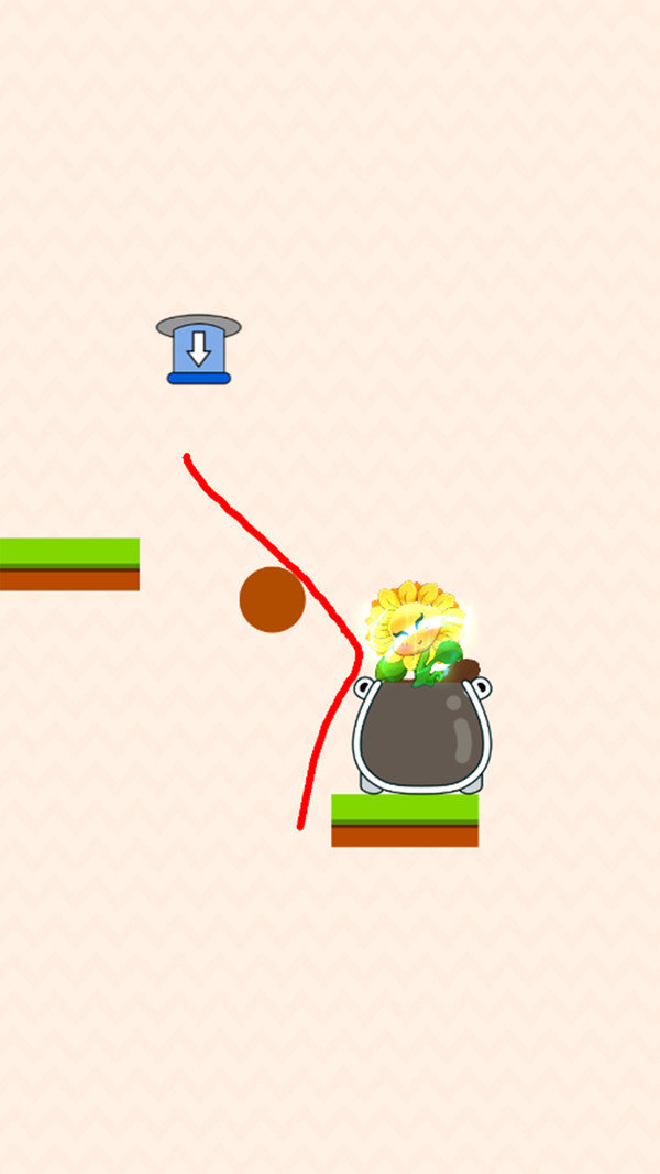 1、玩家得把屏幕里的水准确引到花盆里,这样才能通过关卡。